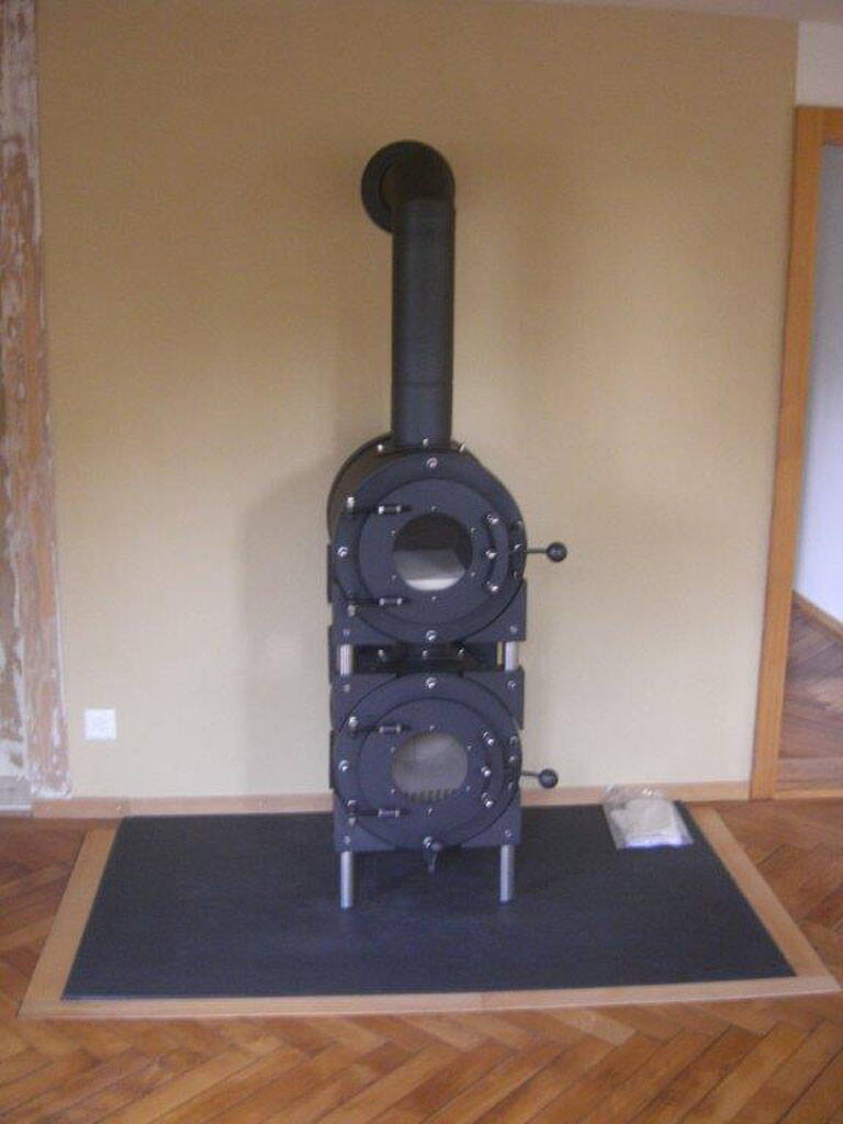 Schwedenofen Firetube Baker Stahl schwarz, Grundmodul plus Backmodul Montagebeispiel