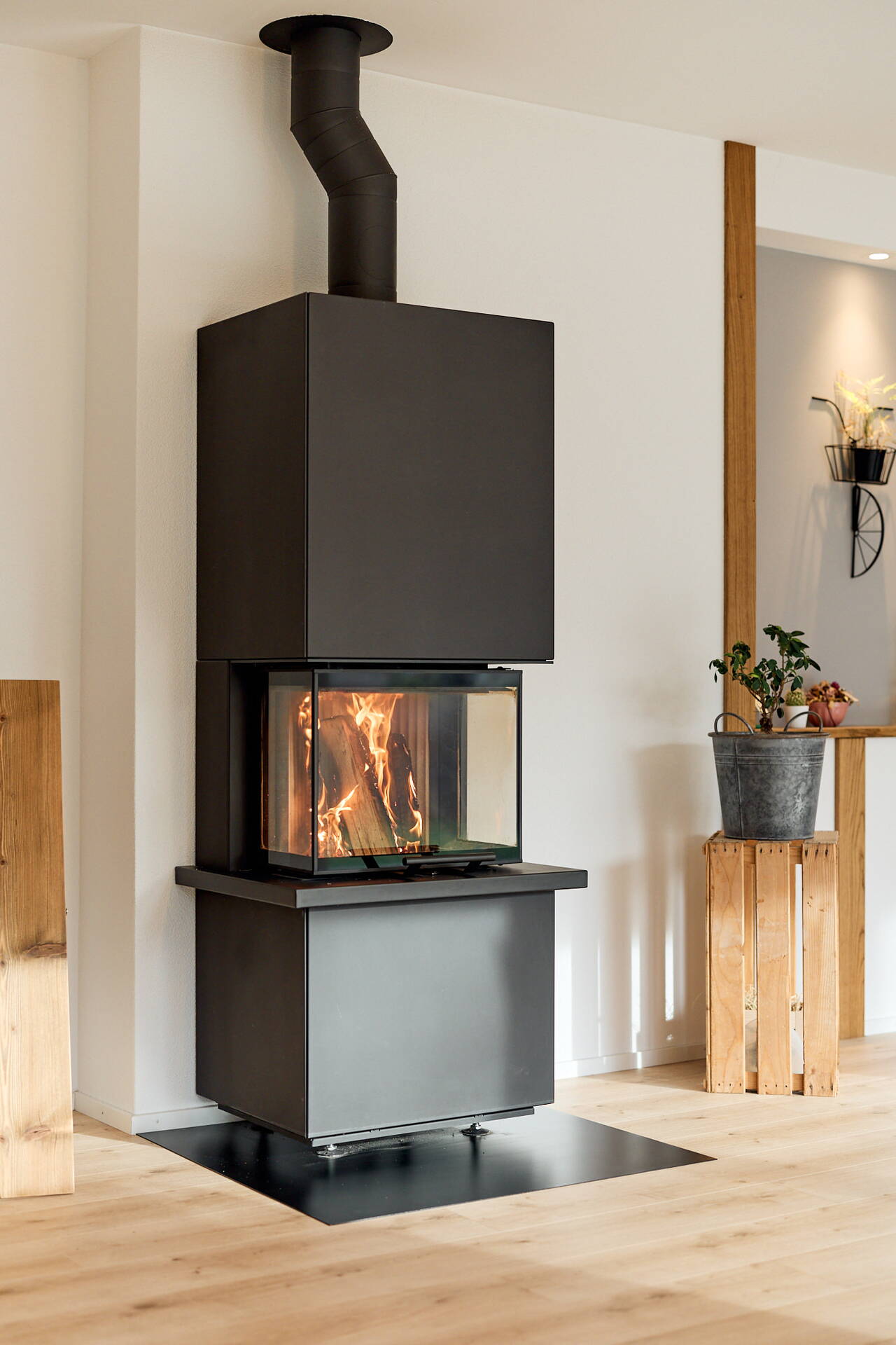 Des cheminées systèmes pour une atmosphère des plus agréables. Plus petit que son « grand » frère OSORNO, mais grand par sa polyvalence – voici l´OSORNO S. Grâce à son design compact, l´OSORNO S vous offre une variété d‘options pour assembler votre poêle désiré. Choisissez entre les différentes finitions, telles que l‘acier noir poli et la pierre naturelle, profitez du PowerBloc! et bénéficiez de la chaleur réconfortante longtemps après l‘extinction du feu. Où que vous soyez assis dans la pièce : la grande vitre à trois côtés d‘OSORNO S vous garantit toujours une vue sur le feu ardent. Et pour le rendre vraiment confortable, vous pouvez adosser un banc ou des compartiments de bois directement contre le poêle.