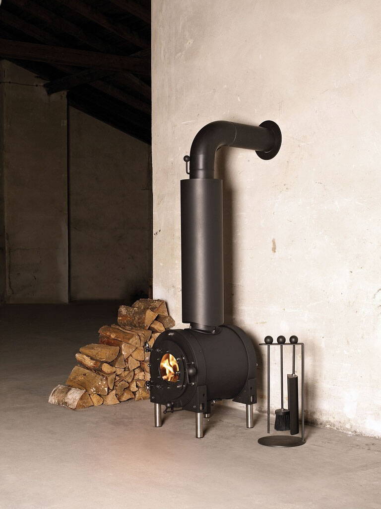 Poêle Cheminée Firetube Air Acier noir, module de base et chaleur
